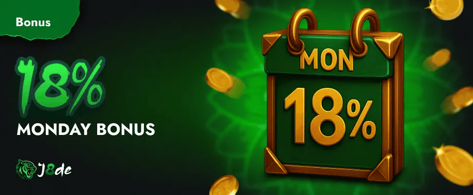 J8DE 18% Monday Bonus up to MYR 300