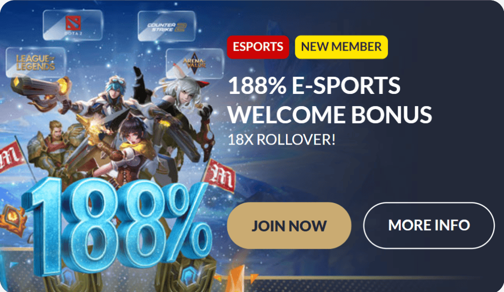 - Select “188% E-Sports Welcome Bonus”.